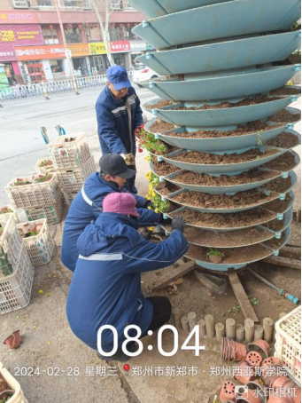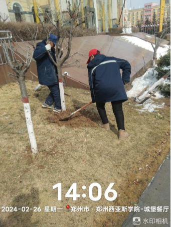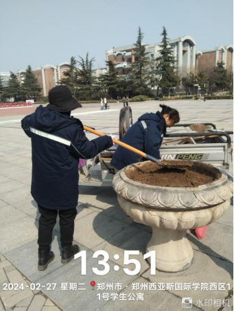 十六、对校园绿化进行草花栽种区域翻土、扶正苗木确保安全、栽种草花迎接春季开学等工作。