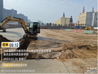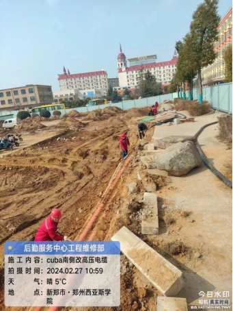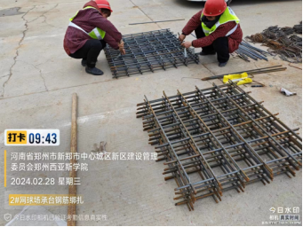 六、CUBA南侧运动场工程:钢结构3号场地基础开挖,2号场地基础钢筋绑扎。五人制足球场排水沟砌筑粉刷,场地整理。