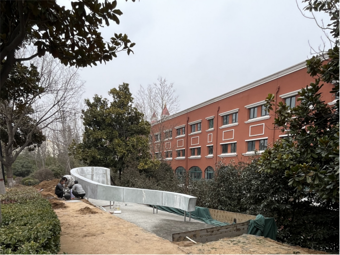 四、丹麦小镇工程:正在进行管网改造,西侧楼梯基础开挖工作。