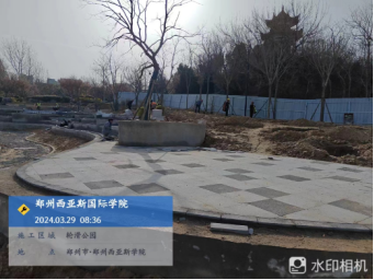 八、轮滑公园工程:轮滑公园大门口花池砌筑完成90%,看台挡土墙完成30%,贴看台踏步石材完成40%,乔木栽植完成80%。