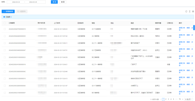二、03月23日-03月29日16:00,客服部共接到781条报修并及时安排人员处理。