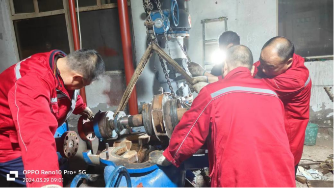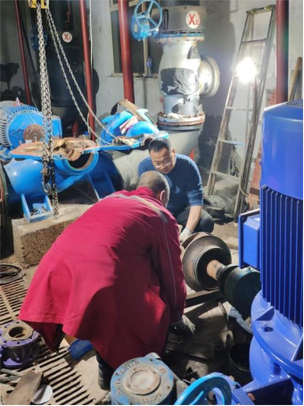十六、停供期间能源服务部维修保养,清洗主机滤网及离心机,维修新机房主机循环泵等,保障校区热水服务。