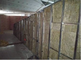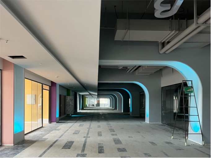 五、8#教学楼建筑学院改造工程:三四五楼办公室隔断完成,卫生间门套打底完成;二楼卫生间镜子打底完成;一楼走廊吊顶造型完成,架子即将完成;一楼展厅隔墙轻钢龙骨完成,隔音棉完成,封板今天全部完成;一楼展厅墙面造型完成,地面地台造型完成。
