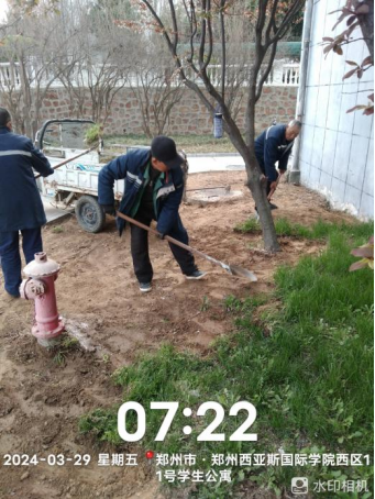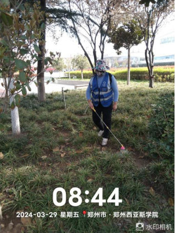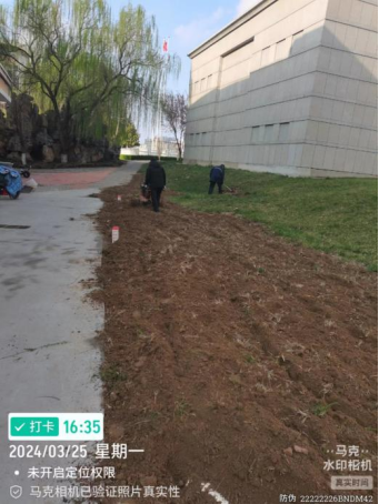 十三、对校园绿化进行草坪除草剂打药、土地裸露区域整改、海棠移栽、葱兰补种、整理绿化斑秃区域土地、日常养护浇水等工作。