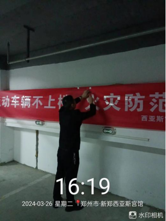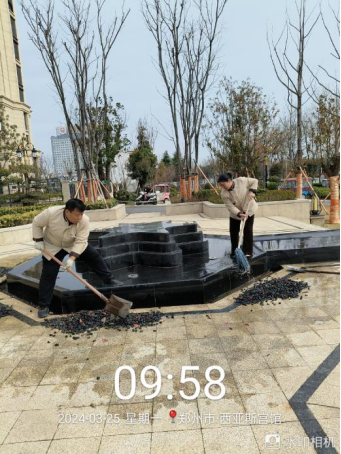 十五、宫馆项目开展广场水系清理、公区电梯间玻璃清洁、消防安全宣传条幅悬挂、空置房定期巡查、2024第一季度业主满意度调查、装修巡查监管等工作。