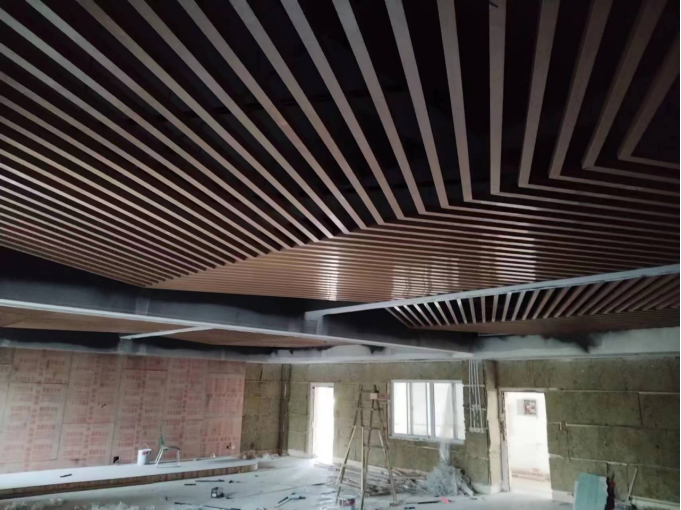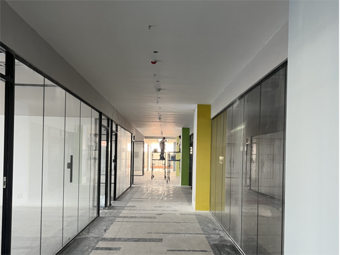 四、8#教学楼建筑学院改造工程:完成二楼多功厅方通造型安装;包部分柱子、管道,门洞封堵;完成部分踢脚线打底与安装;完成三四五楼走廊检修口安装;完成一楼方通吊丝及主骨安装;3、4、5楼隔断完成。