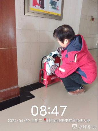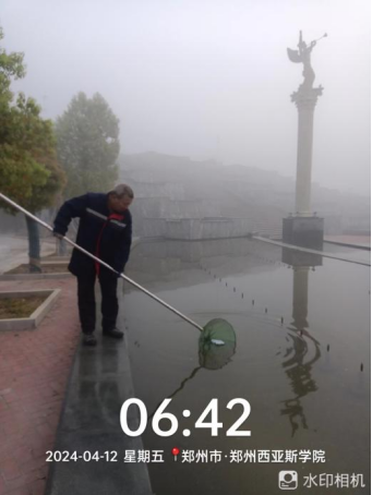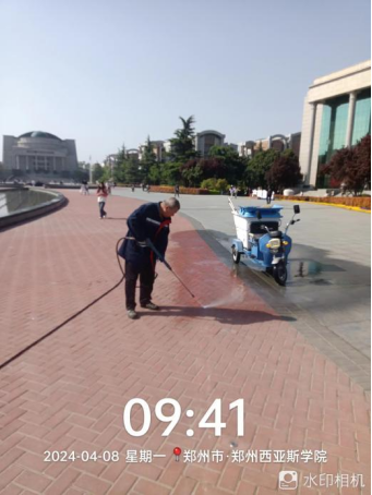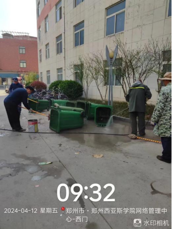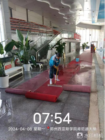 十六、对校园环境进行水系杂物清理、场馆清洁、地面冲洗、垃圾桶冲洗、卫生间清洁、室内灭火器清洁等工作。