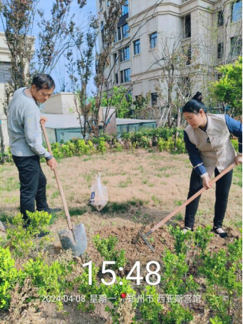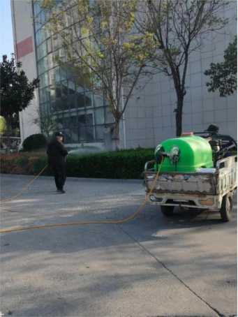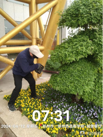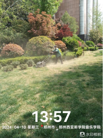 十五、对校园绿化进行草坪修剪、日常浇水养护、绿地整改栽种葱兰、绿化带打药、苗木栽种、造型树修剪等工作。