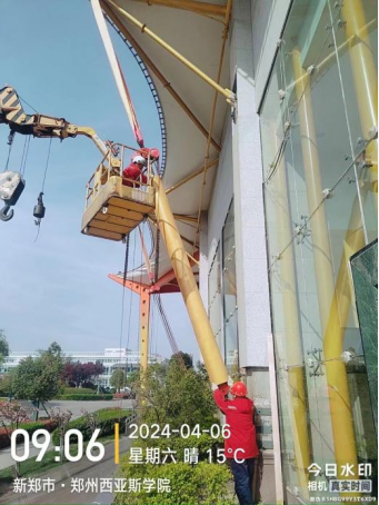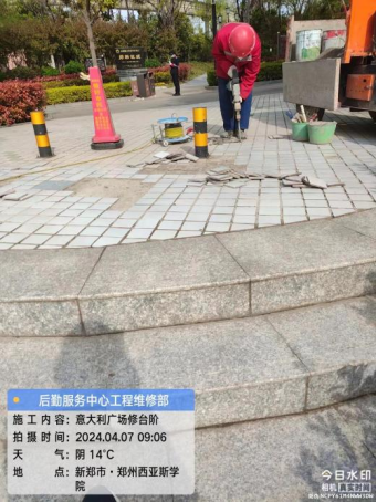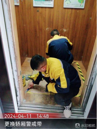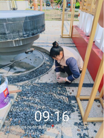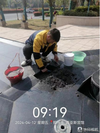 十八、宫馆项目开展了轿厢警戒带更换、大门口喷泉石材修补、园区草皮补种、前广场水系景观石清洗等日常工作。