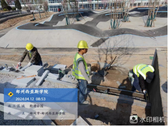 七、轮滑公园工程:水电走管完成90%,透水混凝土面层完成90%,砖砌体完成90%,水磨石面层完成30%,看台踏步石材铺装及包边完成100%。