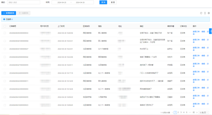 三、04月20日-04月26日16:40,客服部共接到819条报修并及时安排人员处理。