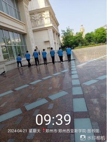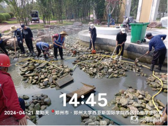 十五、对校园环境进行14号楼台阶冲洗、森林公园水系清洁、室内外日常环境保障、宿舍消杀、垃圾桶消杀等工作。