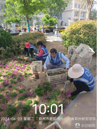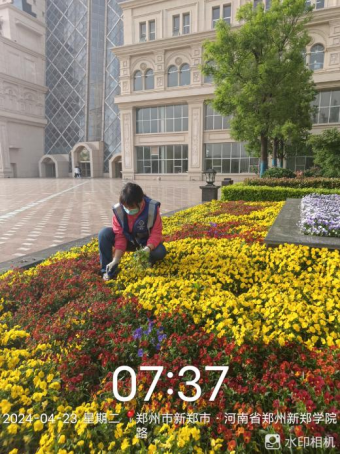 十四、对校园绿化进行草花浇水养护、欧石竹草花栽种、草坪割草、花池内杂草清理、绿篱修剪、绿篱白粉病防治打药、移栽苗木、修剪收尾等工作。
