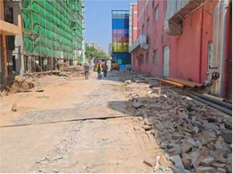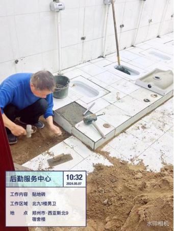 三、田径场改造工程:更衣室地面拆除完成;卫生间防水完成。