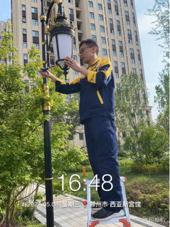 十四、宫馆项目开展了防汛沙袋填装、西门门禁安装、定期品质巡检、路灯照明维修、配合设备厂家调试公区配电房变压器、张贴地面风机房标识牌等工作。