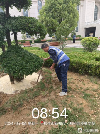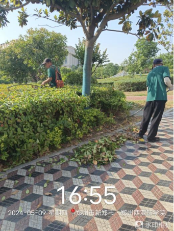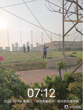 十二、对校园绿化进行花池浇水养护、高尔夫球场草坪整理、绿篱修剪、球类微整形、树池杂草拔除、新栽苗木养护、蚜虫防治打药、苗木移栽、等工作。