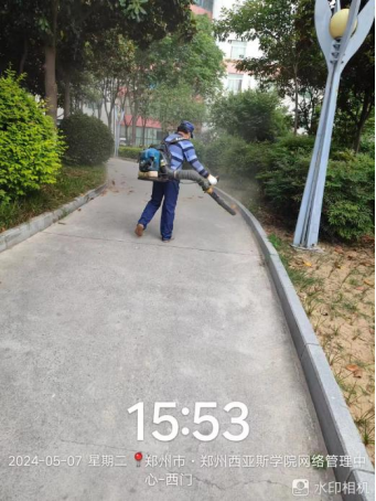 十三、对校园环境进行12号楼玻璃清洁、地面冲洗、绿化大棚处清洁、南区落叶清理、石材清洁、水系清洁、图书馆地下室清洁、消杀、室内外日常环境保障等工作。