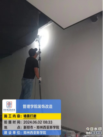 七、管理学院装饰改造项目:玻璃隔断龙骨安装完成,钢化玻璃定制完成;乳胶漆批腻子完成;木门制作完成;淋浴间上下水管道完成,防水及闭水试验完成;电路改造完成90%,照明灯具到货。