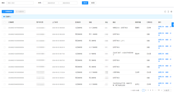 三、05月25日-06月02日23:00,客服部共接到1109条报修并及时安排人员处理。
