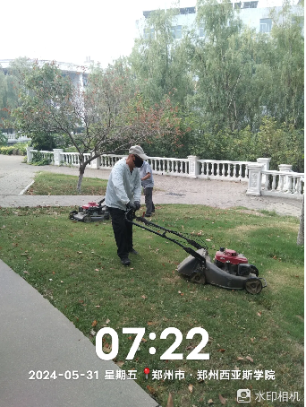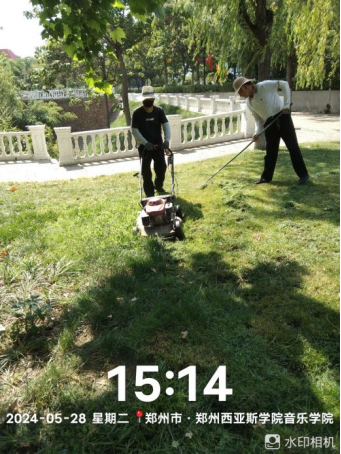 十六、对校园绿化进行草坪割草、日常浇水养护、绿化斑秃区域整地、绿化围栏制作安装等工作。