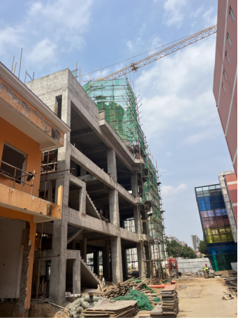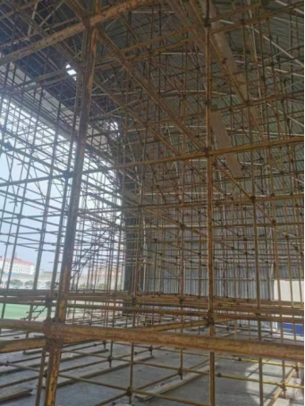 五、田径场改造项目:楼梯间石材全部铺贴完成;舞台钢管脚手架搭设完成;卫生间石膏线全部完成。