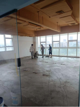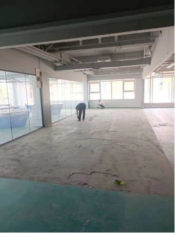 二、19号楼项目:艺术设计学院实验室地面自流平施工;三层东南角新增实验室地面开槽布线。