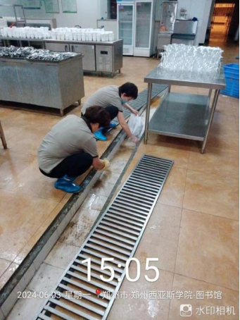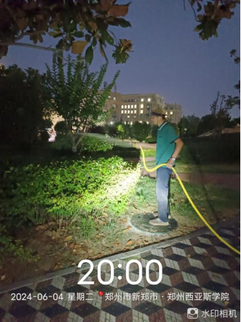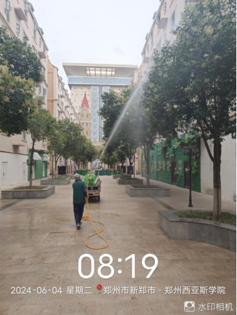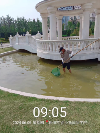 十六、对校园环境进行地面冲洗、水系清洁、河道清理、洒水车协助绿化浇水、落叶清理、图书馆宴会厅清洁等工作。