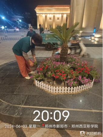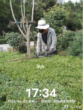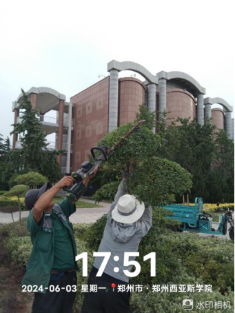 十五、对校园绿化进行草花更换、大叶女贞控籽灵打药、花池杂草清理、绿篱修剪、日常浇水养护、绿植修剪等工作。