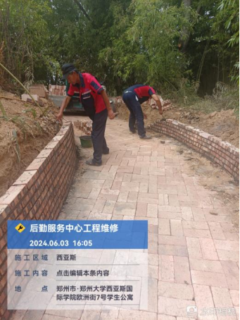 十七、宫馆项目开展了园区绿化浇水、10号楼东地面清洁、园区路灯维修、卫生间漏水维修、日常装修巡查、沟通装修墙体改造签墙体改造承诺书等工作。
