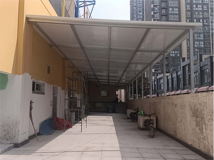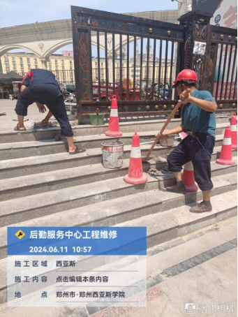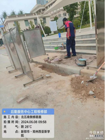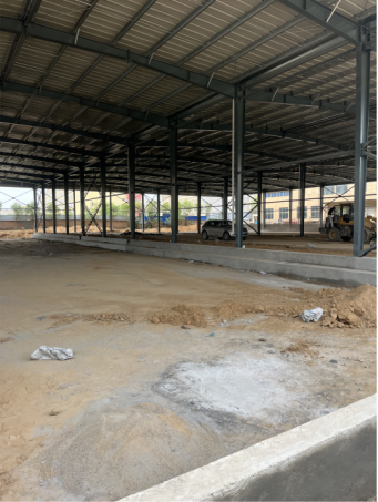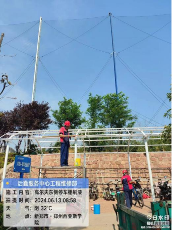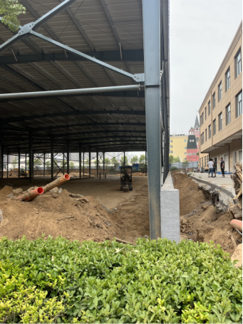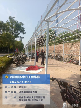 七、田径场改造项目:候场钢架雨棚完成;更衣室屋顶找坡、防水卷材完成;卫生间批腻子完成2遍。