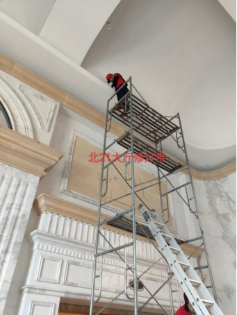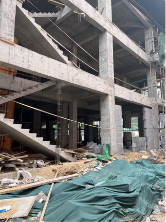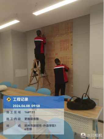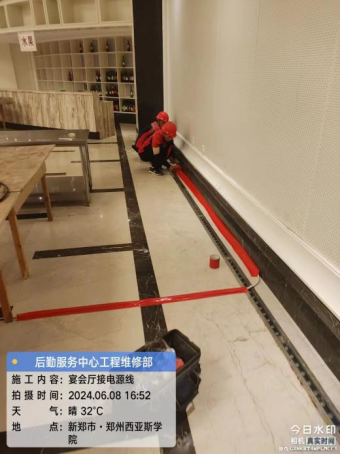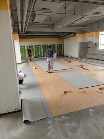 四、19号楼项目:一层艺术设计学院木工板安装;二层中庭石材结晶完成;三层东南角增加房间强电完成;四层艺术设计塑胶地板铺设。