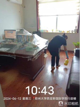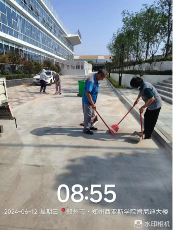 十七、对校园环境进行19号楼周边清洁、办公室除菌消杀、桥面冲洗、水系清洁、绿化带落叶清理、伦敦街西南侧房间大扫除等工作。