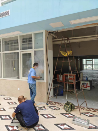 八、管理学院改造项目:玻璃隔断玻璃安装完成80,其余项目全部完成。
