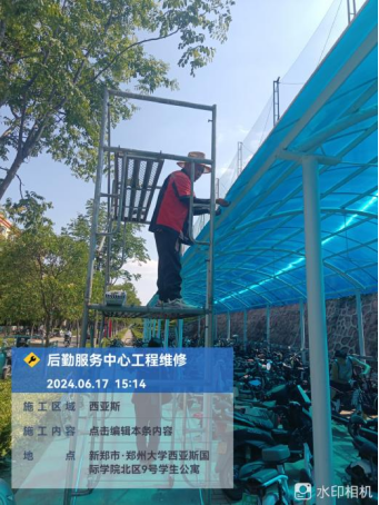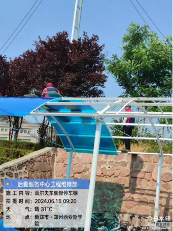 十五、宫馆项目开展了负一层护栏制作、污水泵房检修、雨天清理天台排水道、污水泵房卫生打扫、蚊虫消杀、品质巡查等工作。