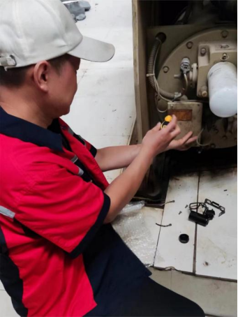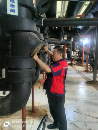 十六、能源服务部检修更换西区1号空调离心机油泵启动器及电容;清洗东区机房空调主机过滤器,保障空调及热水服务。