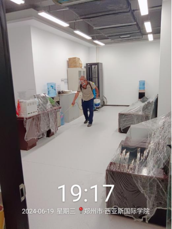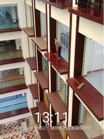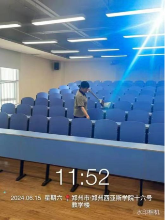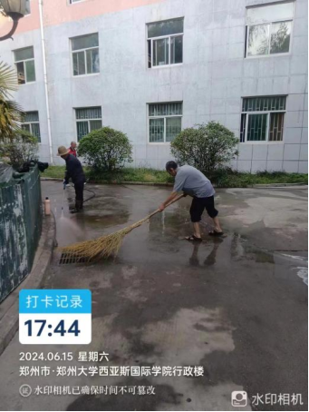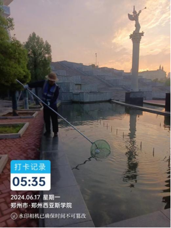 十四、对校园环境16号楼挑檐清洁、办公室消杀、垃圾站点冲洗、时光隧道冲洗、落叶清理、水系清洁等工作。