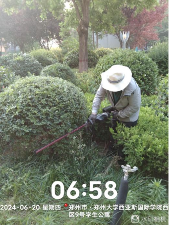 十三、对校园绿化进行草坪修剪、草花补种、花池杂草清理、绿化带杀菌打药、球类修剪微整形、支撑杆加固等工作。