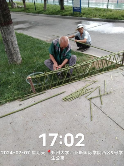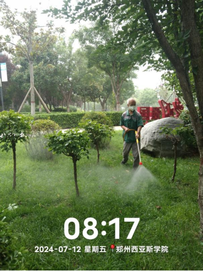 十四、对校园绿化进行草花栽种、除草剂打药、防护围栏制作安装、绿篱修剪、雨季修剪清理危险树枝、杂草清理等工作。