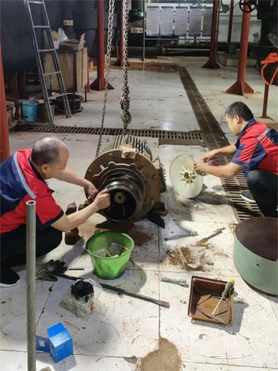 十七、能源服务部清洗机房壳管,维修中水增压泵,更换过滤器并对配电柜进行安全检查,保障空调及热水服务。