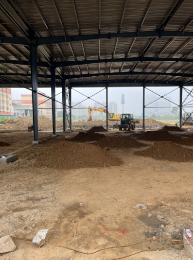 三、丹麦小镇工程:一层商业地坪整理;一区钢结构安装;二区钢结构基础钢筋绑扎,封模板。