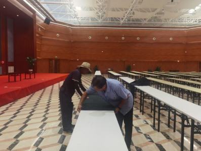 一、开展2024年教学工作会议暨暑期工作会议现场布置、环境清洁、绿植摆放工作。
