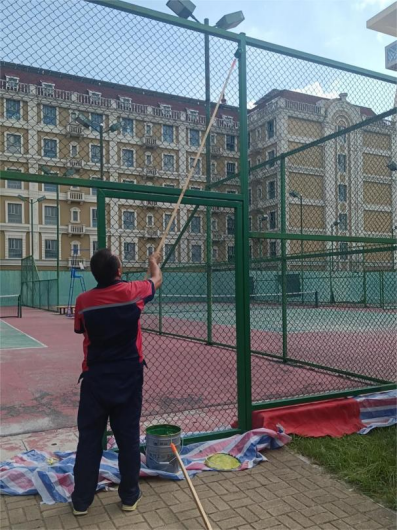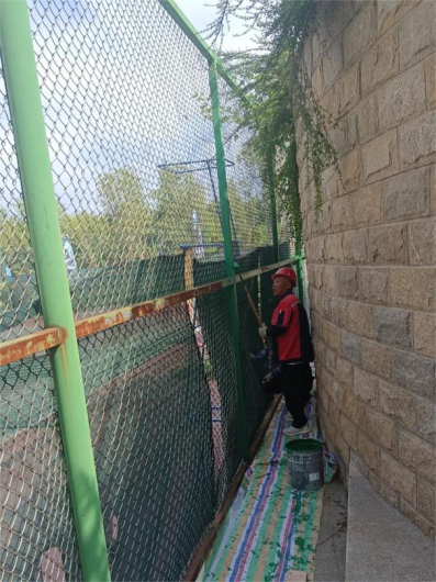 三、CUBA南侧运动公园:1号场地周边花池砌筑完成95%;刷漆完成30%;2号场地刷漆完成100%;南侧人行道平整完成50%;3号场地刷漆完成50%;硅PU完成80%;运动场东西主路完成100%。