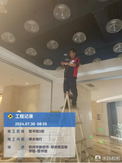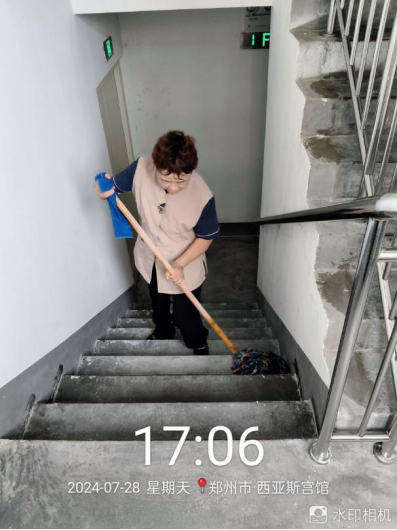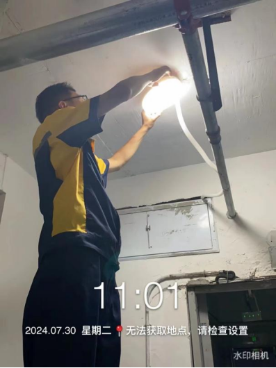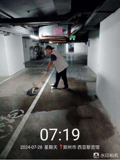 二十四、宫馆项目开展了电梯机房排风扇维修、园区路灯线路排查、负二层照明灯维修、水泵水管安装、地库地面卫生清洁、消防步梯卫生清洁、夏日送清凉、空置房巡查等工作。