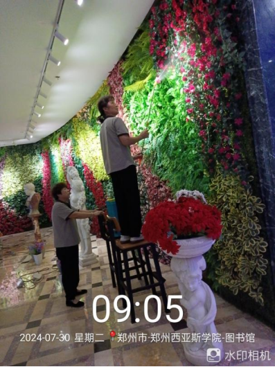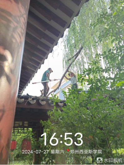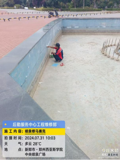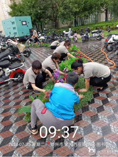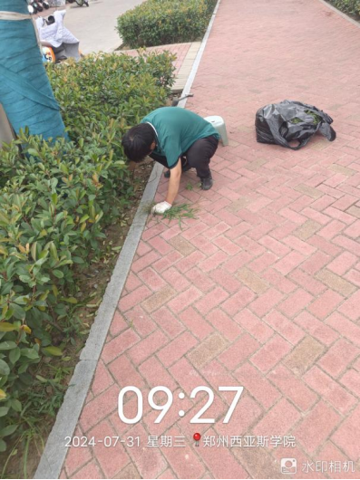 二十三、对校园环境进行了16号楼清洁、CUBA场地除胶、19号楼清洁、绿化带落叶清理、日晷广场喷泉清理、图书馆花墙清洁等工作。