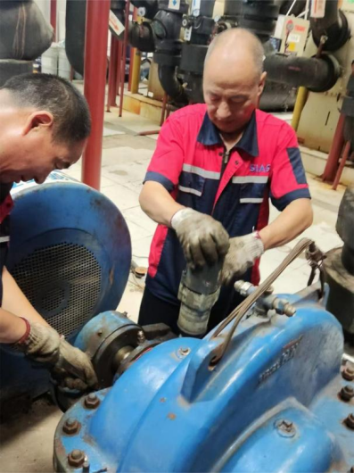 二十五、能源服务部利用暑期对机房设备进行检修。游泳馆主机蒸发器铜管内漏进行抢修,为游泳馆大池加热及热水做好保障。