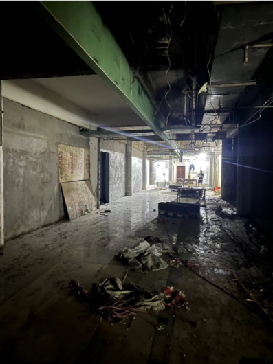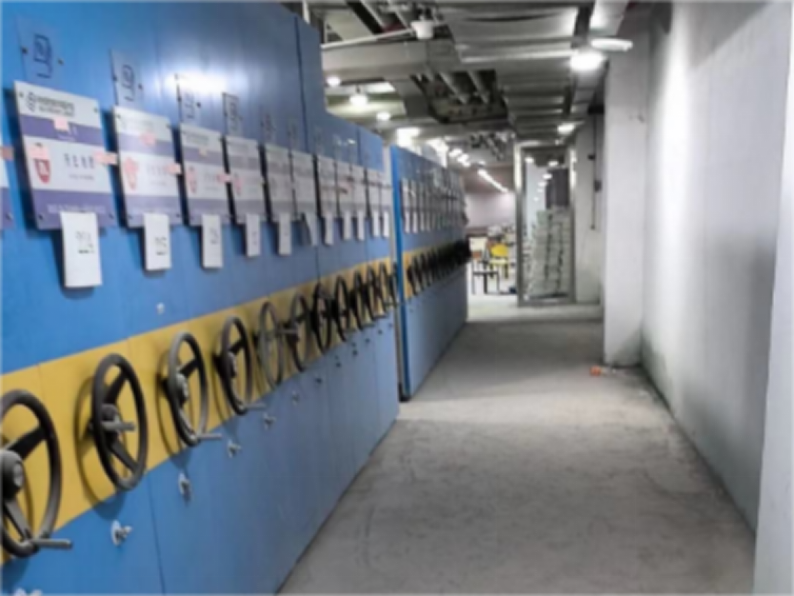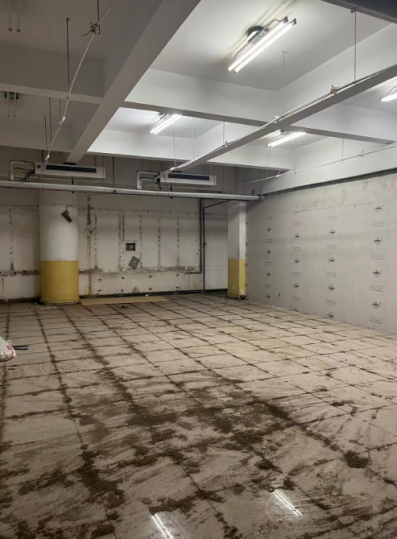 十一、图书馆负一层密集书库地面改造:地面打磨已完成,准备铺设塑胶地板。