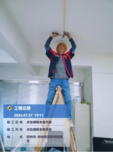 七、9号、10号教学楼装修改造工程:10号楼一层教室线路,隔断施工;其余房间线路改造,乳胶漆施工,定制材料制作。