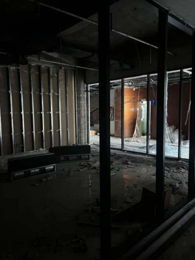 四、行政楼一二层装修改造工程:空调风盘吊装,管道安装;一层隔断施工,水电同步;二层玻璃隔断施工;东西室外土建台阶施工。