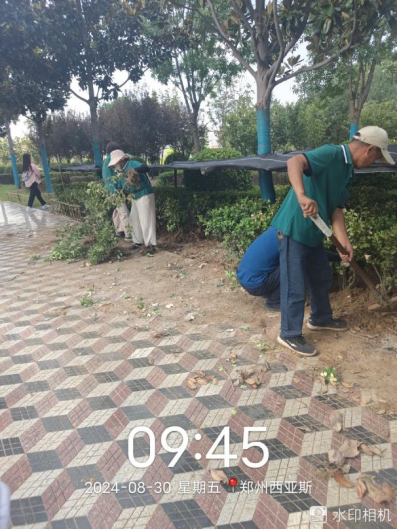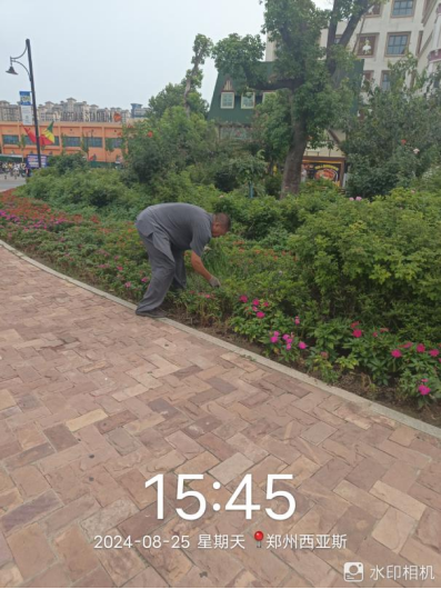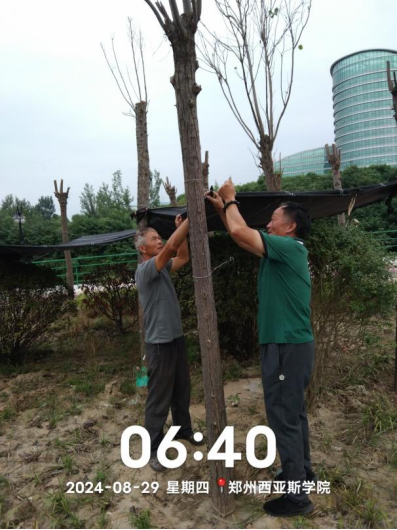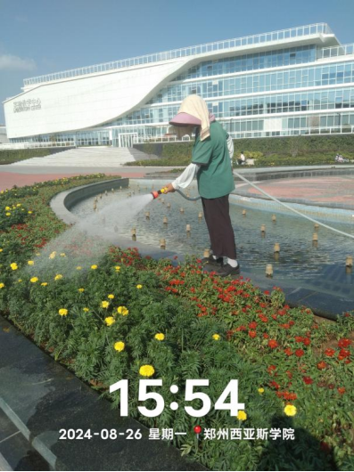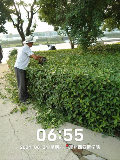十四、对校园绿化进行草花日常浇水养护、草坪修剪、绿篱修剪、新栽苗木遮阳网搭建、移苗补苗、杂草清理、草坪清理、河道灌木丛修剪等工作。