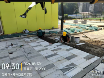 五、田径场改造工程:田径场舞台地漆完成,其他全部完工。